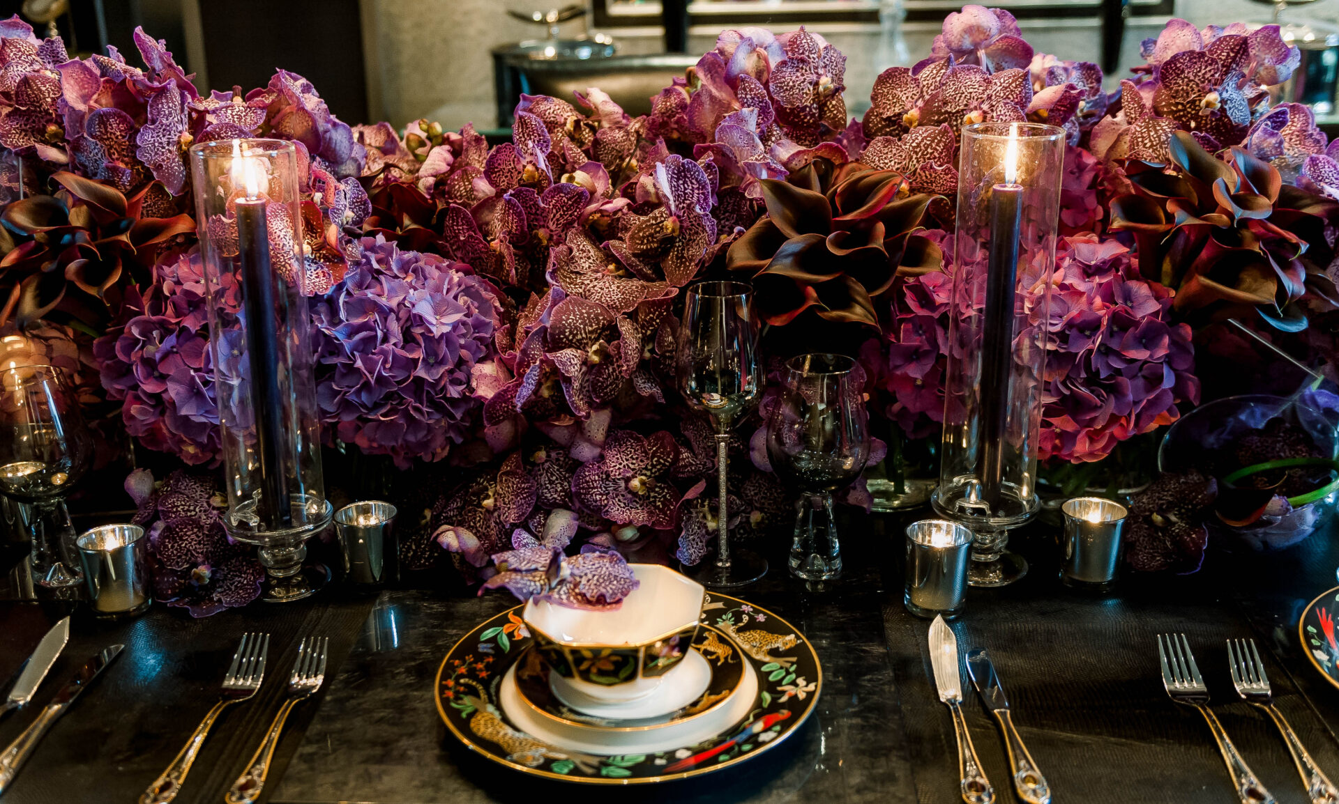 Inspiration was taken from the fine Gucci flatware the client already owned and the clients desire to create a floral design that was decadent, indulgent and luxurious.
