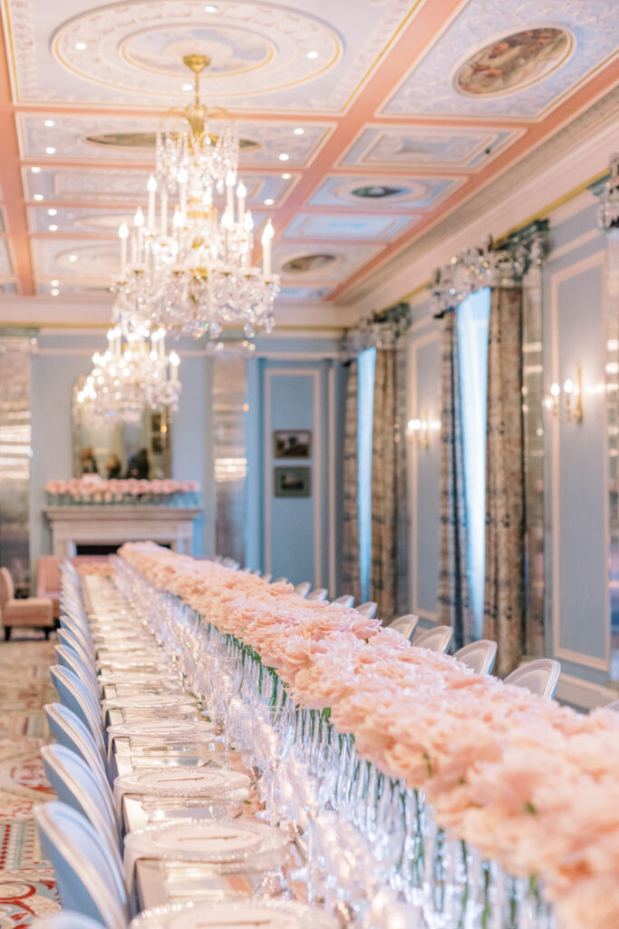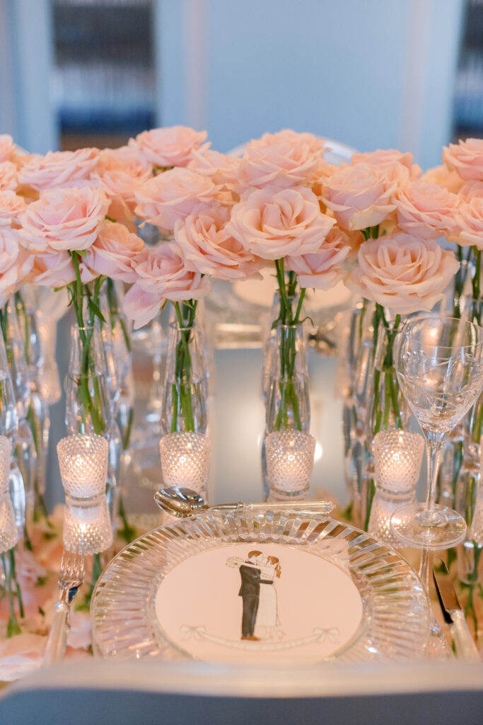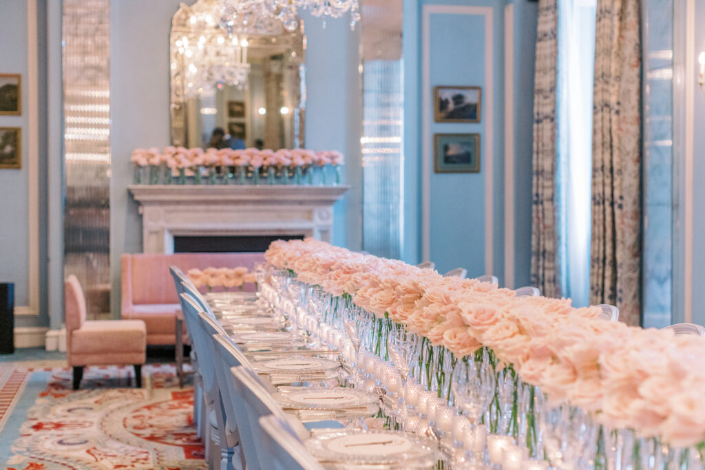 Our bride loved pink roses and wanted us to design and create a post-wedding brunch design that was contemporary, luxurious and memorable.
