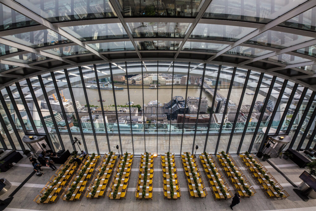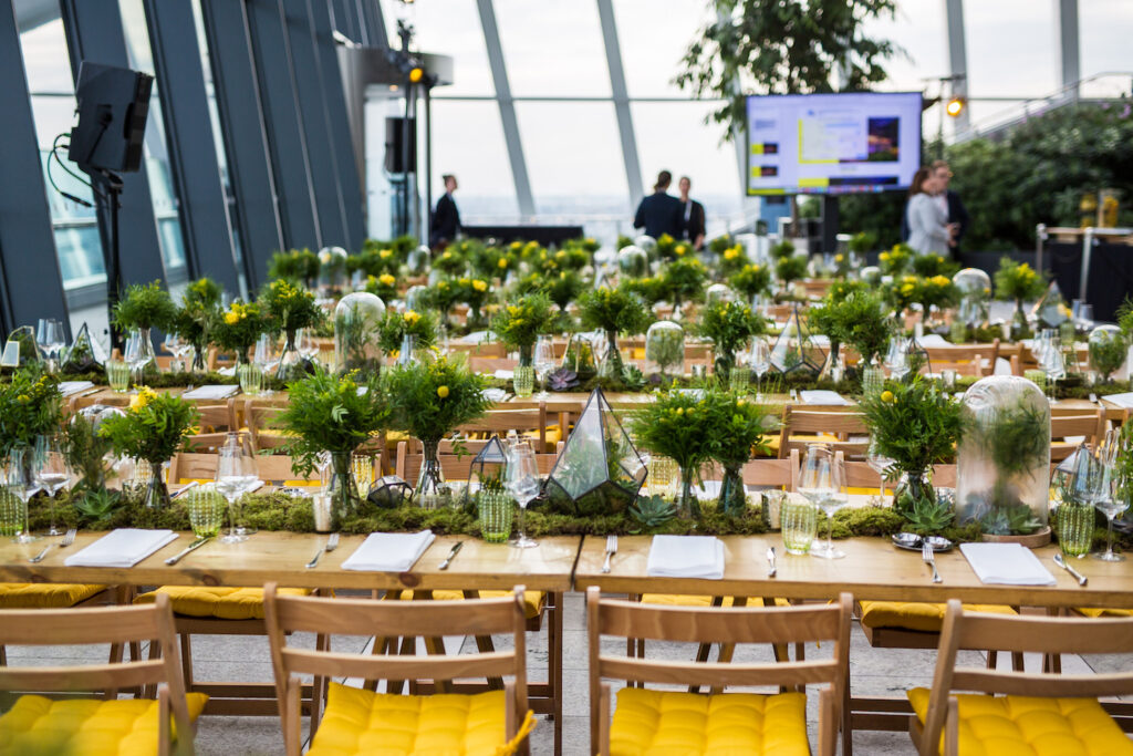 The client was keen to create an event design which was cohesive and contemporary to work harmoniously with their own brand values and the modern Sky Garden space.