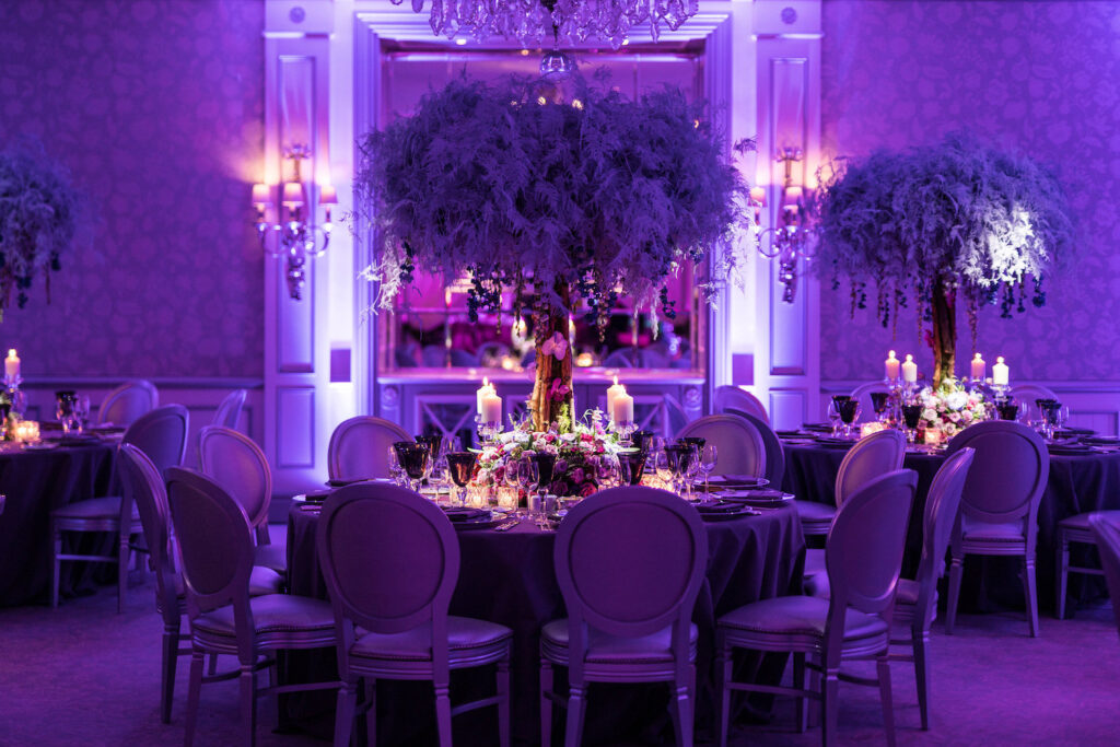 To create an enchanted and luxurious forest at The Savoy London for a very special birthday party in the Riverside Rooms using ultraviolet and other shades of purple.