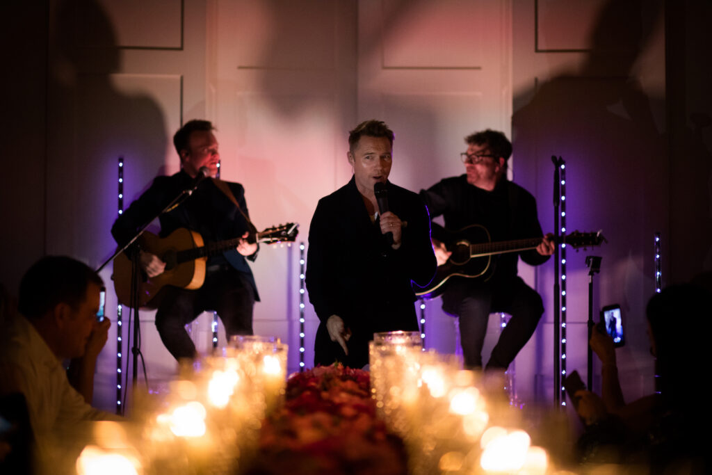Our client also commissioned the wonderfully talented illustrator Victoria Fitzroy to watercolour a fashion portrait of each and every guest as their place setting. In a world of hyper-personalisation, this is one truly special gift that each guest will treasure as a loving memory of such a special surprise birthday party. As if this wasn’t enough…the surprises continued as guests were lavished with an array of surprise performances which culminated with an intimate acoustic set by celebrity performer Ronan Keating. In the most intimate performance of his career, Ronan Keating performed all his classic hits to this select group of guests to ensure an evening that will be treasured forever.