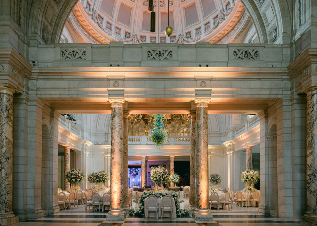 The bride also wanted to have her ceremony outdoors and add impact in the grand surroundings of the V&A museum for guests during dinner. Hugely detail driven, it was imperative that we ensure each element of her wedding design worked in harmony to offer a final result which was beyond elegant.
