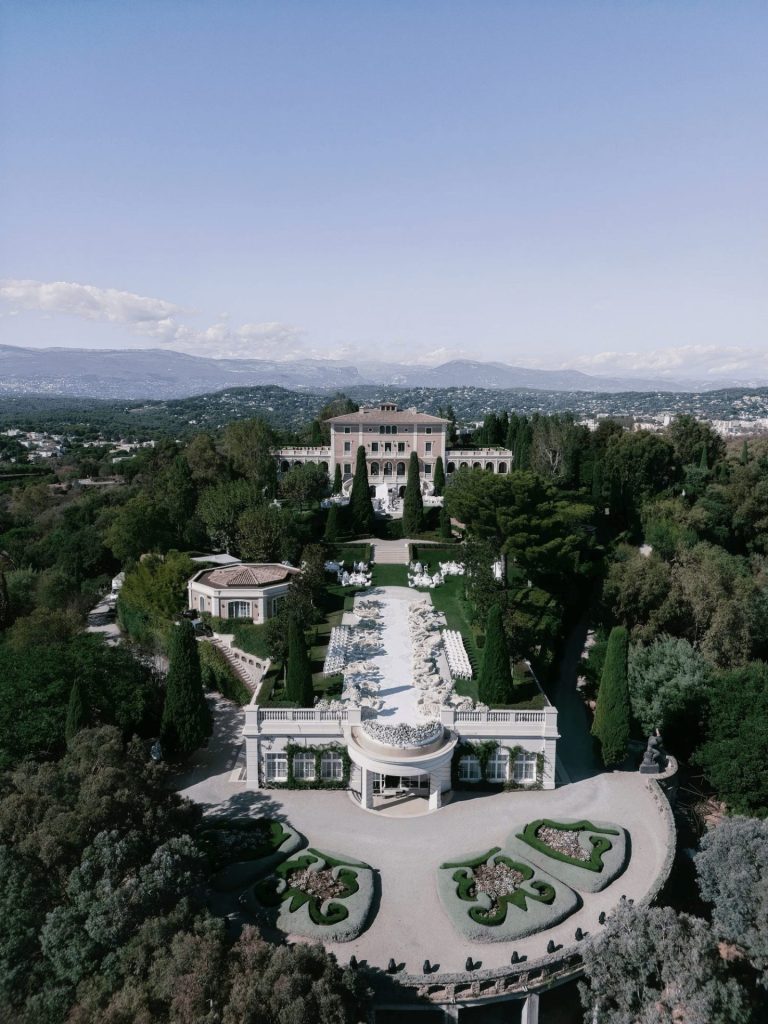 A contemporary wedding at Château de la Croix des Gardes in Cannes that merged the timeless grandeur of the Riviera estate with a bold, sculptural floral concept. Inspired by the château’s sweeping terraces and uninterrupted views of the Mediterranean, the design centred on an all-white palette that created a striking contrast against the deep blue sea and lush gardens.